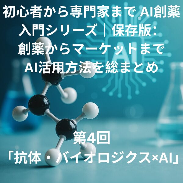 初心者から専門家まで AI創薬入門シリーズ|保存版:創薬からマーケットまでAI活用方法を総まとめ – 第4回「抗体・バイオロジクス×AI」配列設計・アフィニティ成熟・「開発しやすさ」の予測まで、低分子とは異なるバイオ医薬特有の課題とAI活用パターンを整理します。