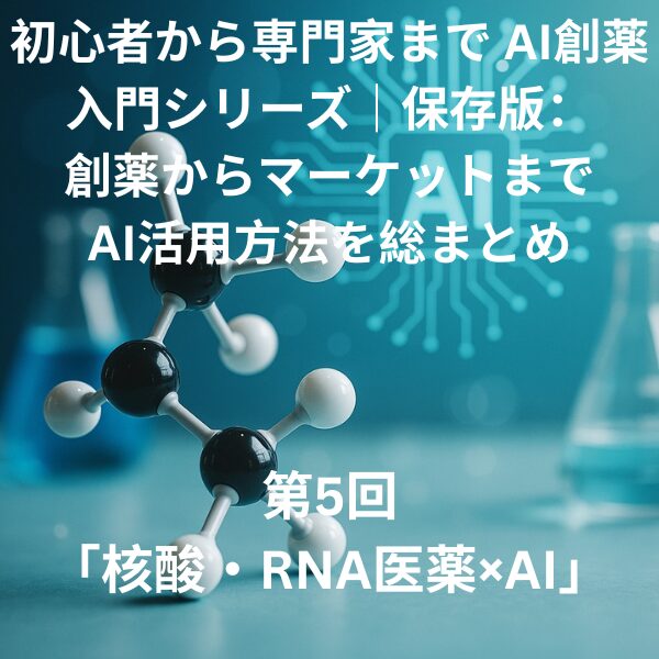初心者から専門家まで AI創薬入門シリーズ|保存版:創薬からマーケットまでAI活用方法を総まとめ – 第5回「核酸・RNA医薬×AI」配列設計から標的選定、デリバリー最適化まで、モダリティ特有の課題とAI活用パターンを整理します。