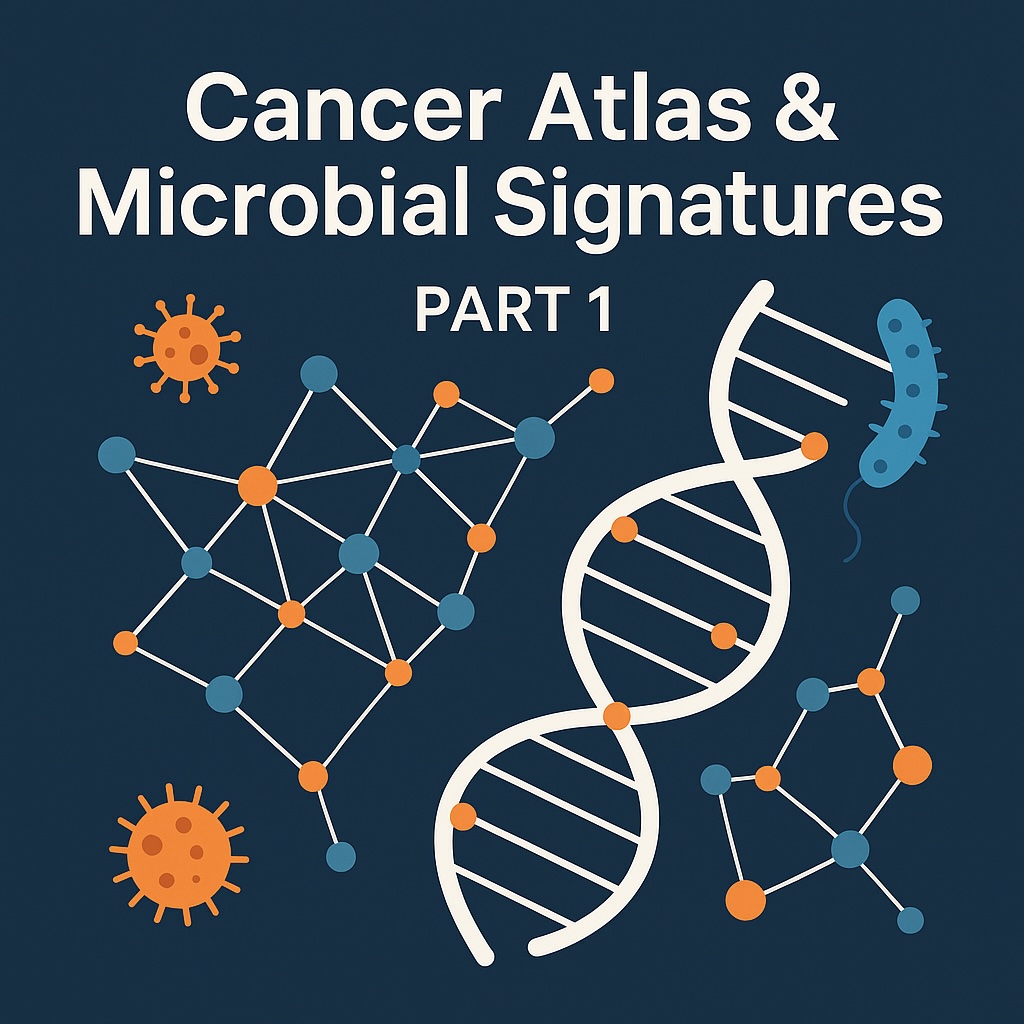 本稿は、がん研究における「網羅的解析(pan-cancer)」と「アトラス・データベース」の役割を、初心者にも伝わるようにやさしく解説します。タイトル下の導入として、近年の再解析論文(TCGA全ゲノムWGSの微生物再評価、およびGenomics Englandの大規模WGS解析)で示されたアップデートに軽く触れつつ、Part 2で専門家向けに深掘りします。