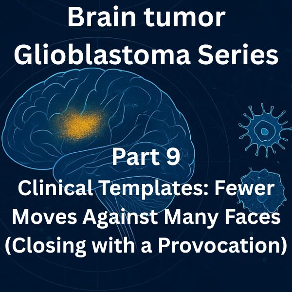 This closing chapter weaves the series into design principles that tackle GBM’s plasticity (OPC/AC/MES transitions), intratumoral diversity, and therapy-driven state shifts. The goal: a minimal set of moves that reaches maximal depth.