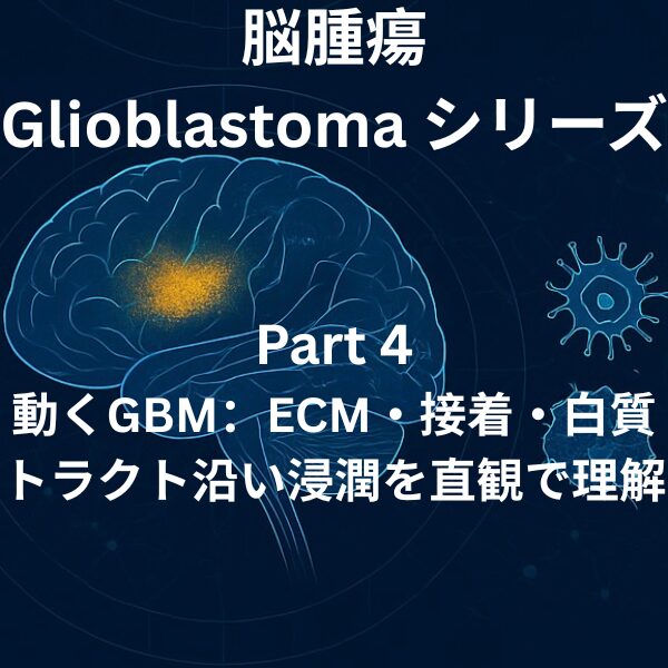 Glioblastoma シリーズ|Part 4:動くGBM――ECM・接着・白質トラクト沿い浸潤を直観で理解